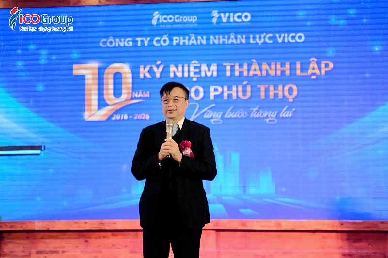 Phát biểu chỉ đạo tại sự kiện, ông Nguyễn Quang Tuấn – Chủ tịch HĐQT, Tổng Giám đốc Tập đoàn ICOGroup ghi nhận và đánh giá cao những nỗ lực, đóng góp của ICO Phú Thọ trong suốt 10 năm qua, coi đây là một trong những đơn vị có vai trò quan trọng trong quá trình hình thành và phát triển hệ sinh thái giáo dục - đào tạo nghề của ICOGroup.