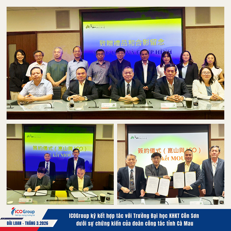 Ngày 19/3, trong khuôn khổ chương trình công tác tại Đài Loan, ICOGroup cùng đoàn đại biểu tỉnh Cà Mau đã có buổi làm việc tại Trường Đại học Khoa học Kỹ thuật Côn Sơn.
