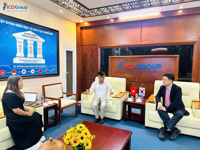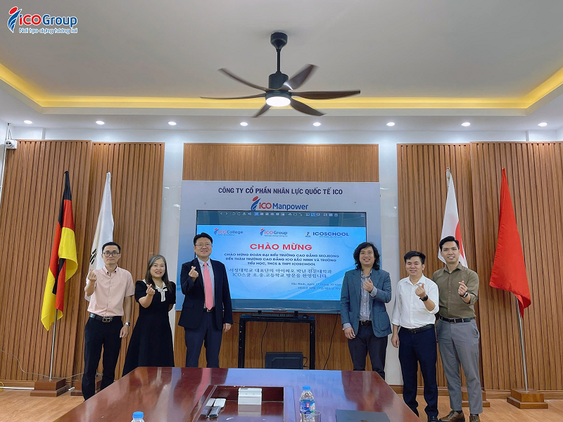 Sau buổi làm việc với Ban lãnh đạo Tập đoàn, đại diện Trường Cao đẳng Seojeong cũng đã gặp gỡ và làm việc với Ban lãnh đạo ICOSchool và Ban Dự án Trường Cao đẳng ICO Bắc Ninh để trao đổi chương trình hợp tác. Các bên đã chia sẻ về định hướng phát triển chương trình đào tạo, hướng tới mục tiêu giúp học sinh Việt Nam được tiếp cận chuẩn giáo dục nghề nghiệp quốc tế ngay tại Việt Nam.
