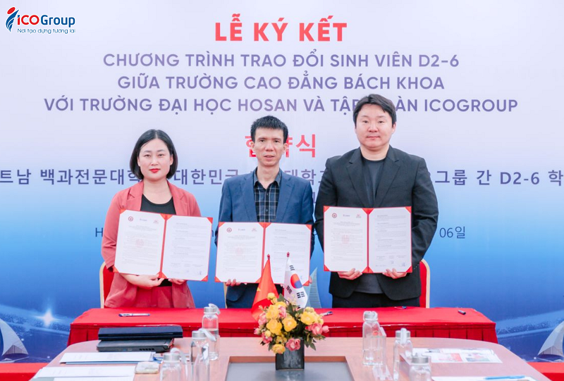 Vừa qua, Tập đoàn ICOGroup đã tham dự lễ ký kết Biên bản Ghi nhớ hợp tác (MOU) với Trường Đại học Hosan (Hàn Quốc) và Trường Cao đẳng Bách Khoa. Thỏa thuận nhằm triển khai chương trình du học và trao đổi sinh viên theo lộ trình chính quy tại Hàn Quốc, mở rộng cơ hội học tập quốc tế cho học sinh - sinh viên Việt Nam.