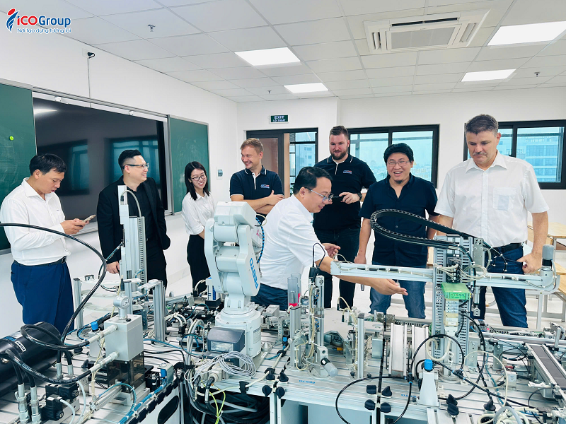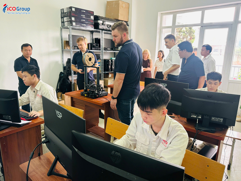 Doanh nghiệp Đức và đại diện ICOGroup tham quan cơ sở vật chất giảng dạy của Trường Cao đẳng Cơ điện Hà Nội